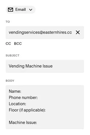 Connected the vending department email address as a storage site for the form for immediate notification of feedback.